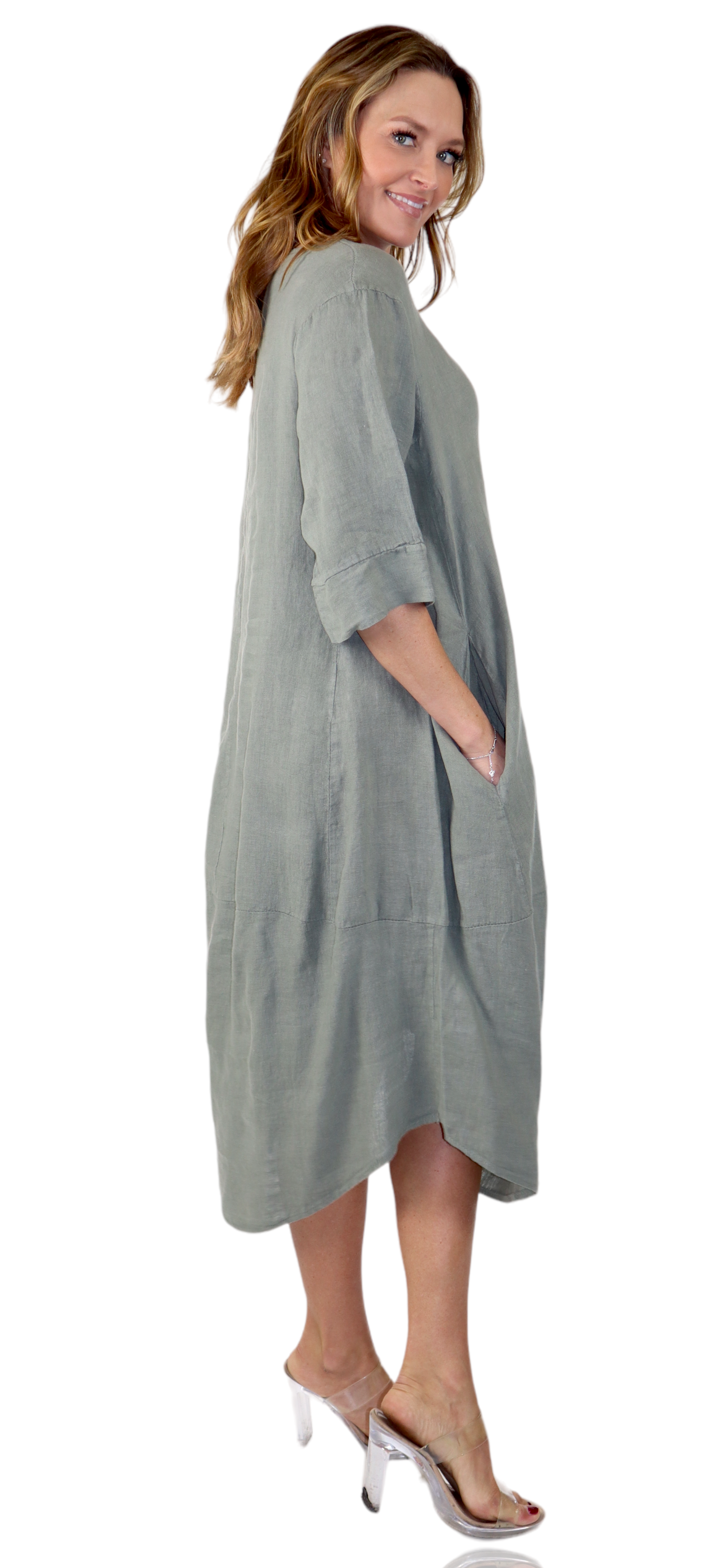 ♥ 100% Prewashed Linen. This is a full circle swing dress so the flowing balloon bottom hides hips and has a slimming effect