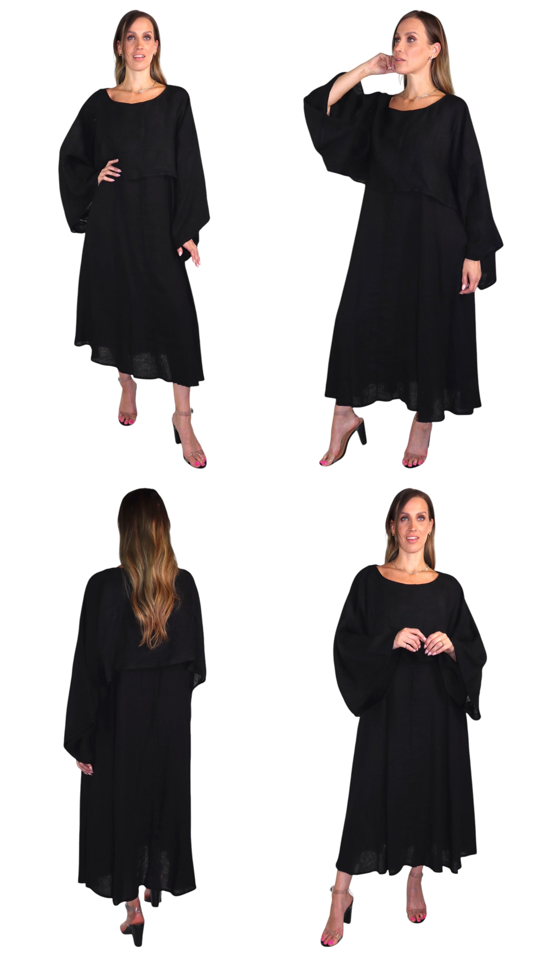 Womens 2 Piece Linen High Fashion Bell Sleeved Flounce Crop Top and Sleeveless Dress Set | One Size (Fits S-L)